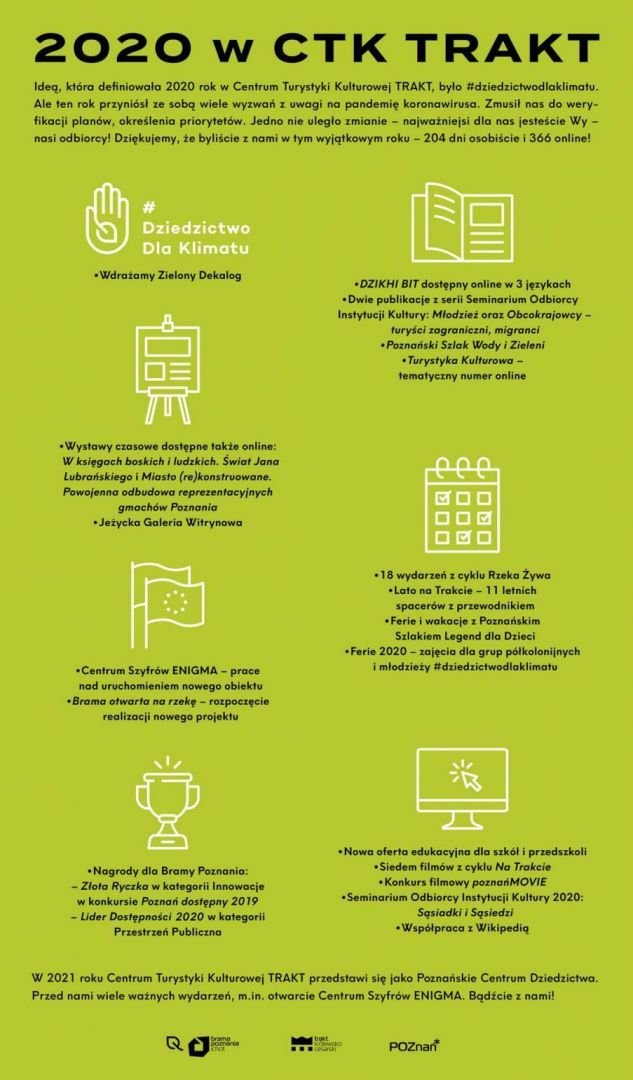 2020 to ostatni rok, gdy podsumowujemy działalność jako Centrum Turystyki Kulturowej TRAKT. Od 2021 roku działamy jako Poznańskie Centrum Dziedzictwa!